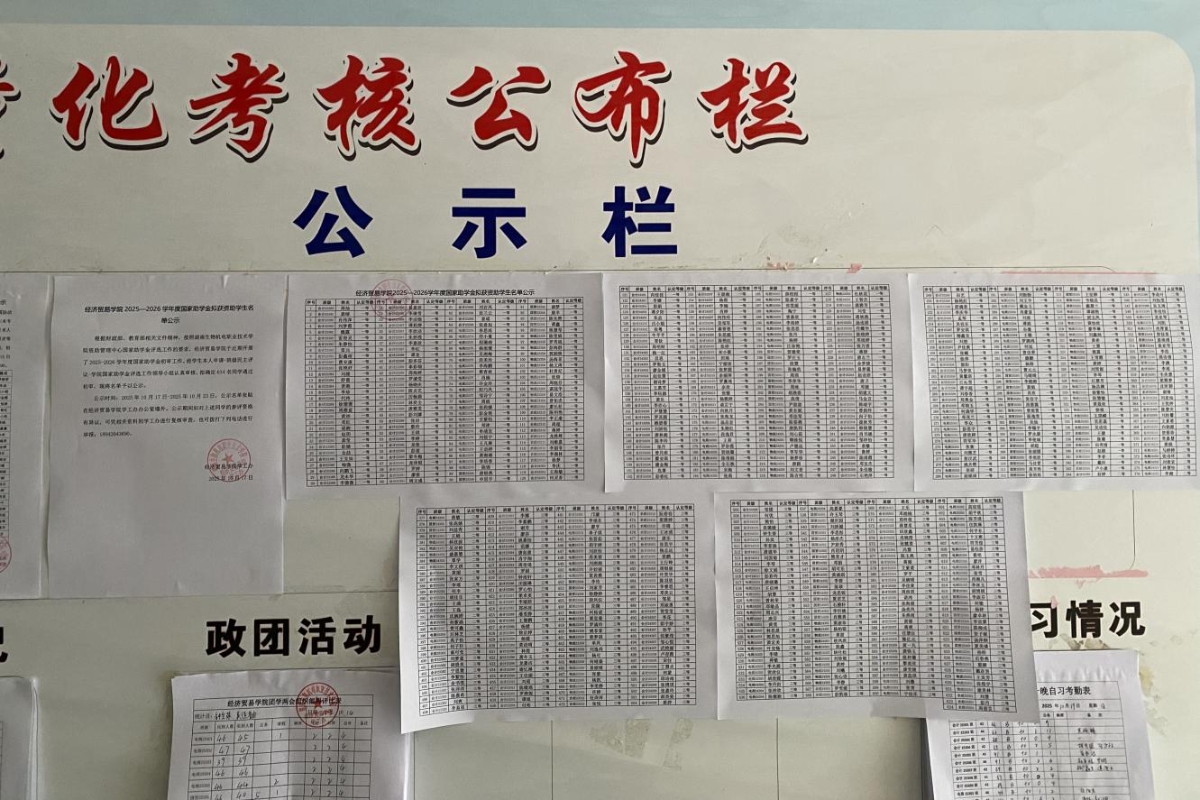 公示时间:2025年10月17日-2025年10月23日,公示名单张贴在经济贸易学院学工办办公室墙外。公示期间如对上述同学的参评资格有异议,可凭相关资料到学工办进行复核审查,也可拨打下列电话进行举报:18942043690。